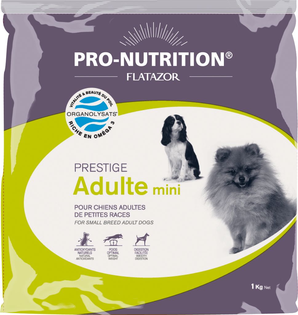 Flatazor Prestige Adult — это французский сухой корм супер-премиум класса, разработанный для взрослых собак всех пород со средним уровнем активности, основным компонентом которого является высококачественное мясо птицы.